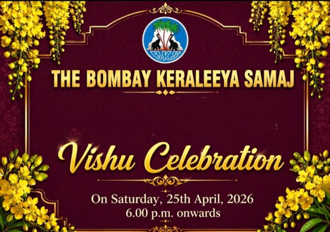 മുംബൈ: ബോംബെ കേരളീയ സമാജം മാട്ടുങ്കയുടെ നേതൃത്വത്തിൽ വിഷു ആഘോഷം വിപുലമായി സംഘടിപ്പിക്കുന്നു. മലയാളികളുടെ സാംസ്കാരിക ഐക്യം ആഘോഷമാക്കി മാറ്റുന്ന ഈ പരിപാടി ഏപ്രിൽ 25 ശനിയാഴ്ച വൈകിട്ട് 6 മുതൽ ആരംഭിക്കും.