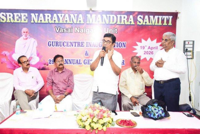 വസായ്: ശ്രീനാരായണ മന്ദിരസമിതി വസായ്–നയ്ഗാവ് യൂണിറ്റിന്റെ പുതിയ ഗുരു സെൻ്ററിന്റെ ഉദ്ഘാടനവും ഗുരുദേവ പ്രതിഷ്ഠാ കർമവും കുടുംബ സംഗമവും ഭക്തിനിർഭരമായ അന്തരീക്ഷത്തിൽ നടന്നു. സമിതി പ്രസിഡൻറ് എം. ഐ. ദാമോദരൻ ഉദ്ഘാടനം നിർവഹിച്ചു. പ്രതിഷ്ഠാ കർമത്തിന് മനോജ് ശാന്തി മുഖ്യകാർമികത്വം വഹിച്ചു.
