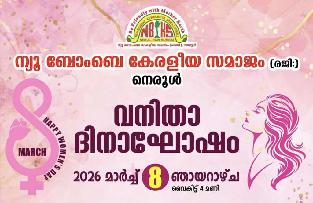 നവി മുംബൈ : ന്യു ബോംബെ കേരളീയ സമാജത്തിന്റെ ആഭിമുഖ്യത്തിൽ മാർച്ച് 8-ന് വൈകിട്ട് 4 മണിക്ക് എൻബികെഎസ് കോംപ്ലക്സിൽ വനിതാ ദിനാഘോഷം നടക്കും.