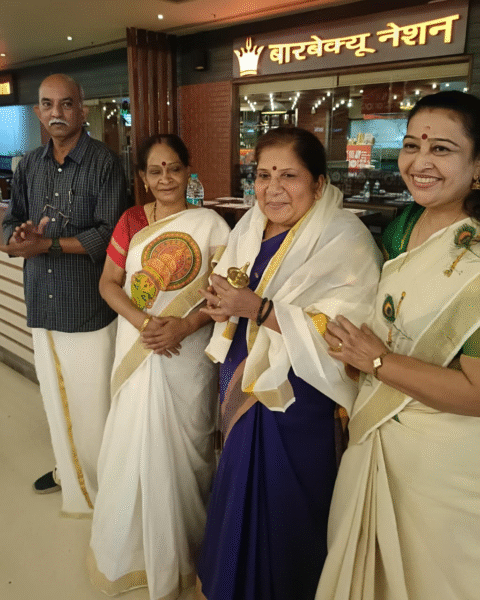 മുതിർന്ന അംഗങ്ങളായ സുധ, രാജി, മോളി, ഹരിഹരൻ, രാമസ്വാമി എന്നിവരെ പൊന്നാട അണിയിച്ച് നിലവിളക്ക് നൽകി ആദരിച്ചു. തുടർന്ന് ബാർബിക്യൂ നേഷൻ ഒരുക്കിയ വിഭവസമൃദ്ധമായ ഉച്ചഭക്ഷണം പങ്കുവെച്ചു. വിവിധ വിഭവങ്ങൾക്കൊപ്പം ഐസ്ക്രീമും പേസ്ട്രികളും ഉൾപ്പെട്ട സദ്യ എല്ലാവർക്കും ഓർമ്മകളിൽ മധുരം നിറച്ചു.