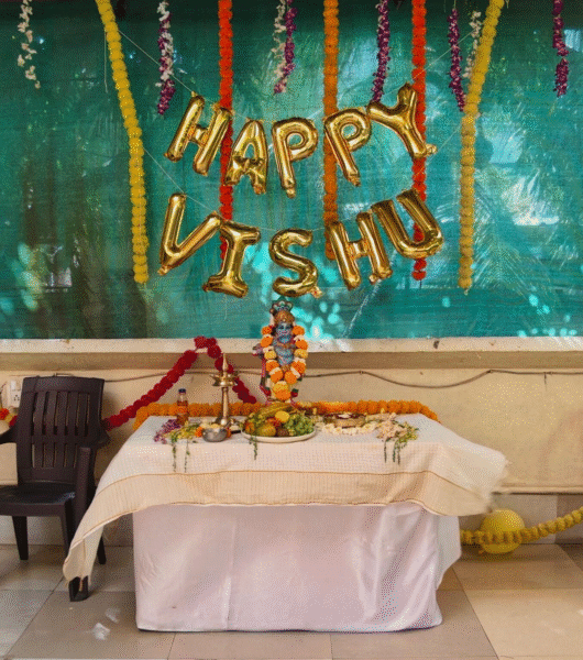 The Vishukkani arrangement, festive decorations, and the presence of members dressed in traditional attire added a special charm to the celebration. The beautifully arranged Vishukkani, symbolizing prosperity and the beginning of the new year, was the main attraction of the event. The active participation of the members made the celebration vibrant and lively.